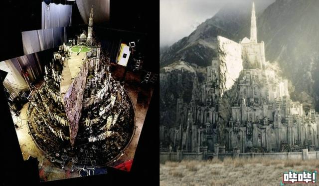 ↑↑维塔工作室制作的“白城”模型(左),在电影中(右)简直是以假乱真