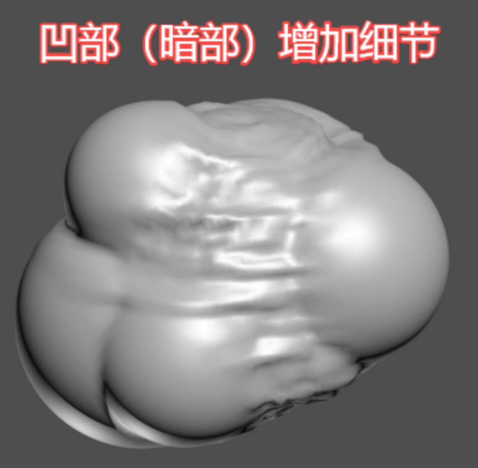 总之大家应该能看明白,置换贴图对模型的影响,完全遵循图像黑白灰度对应凹凸的影响。