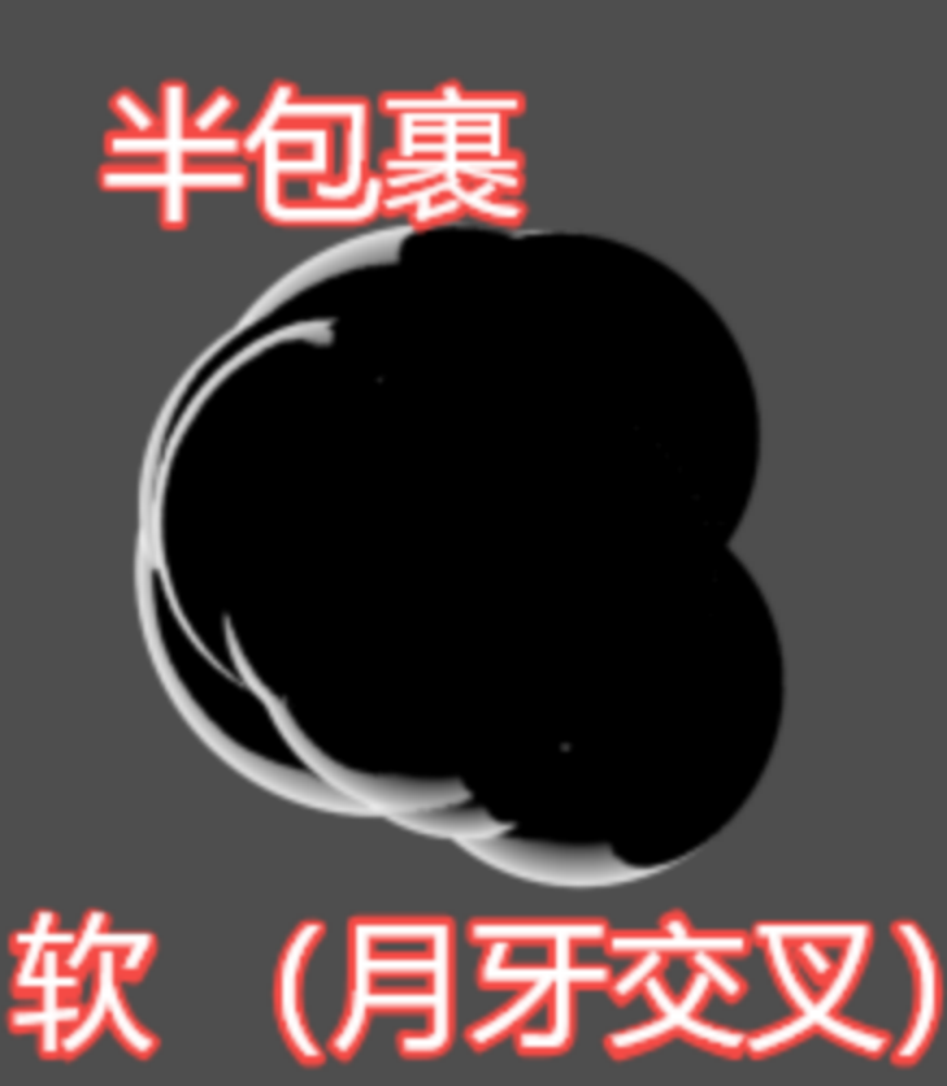 “轮廓”“重叠”和“延伸重叠”3个通道我们就得到了可控的3大区域,这还没有考虑灯光角度和上面说的“暗区”通道。也就是说,我们几乎可以控制渲染区域的所有可能性。让我们先观察“轮廓”“重叠”和“延伸重叠”各自角度的分布情况: