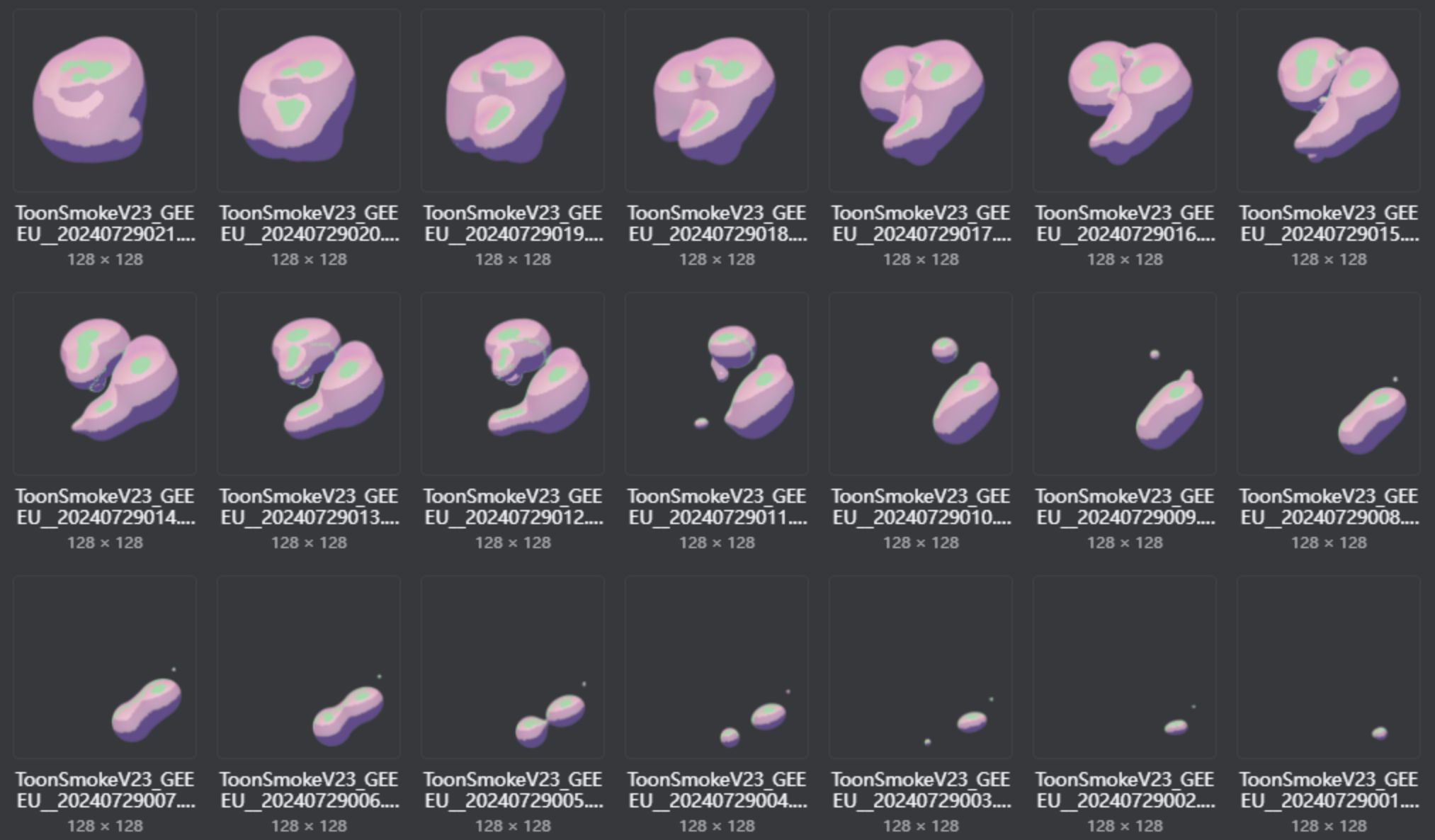如此这般,我们便可以得到任意的卡通烟团动态序列贴图!所有类型的项目可用。